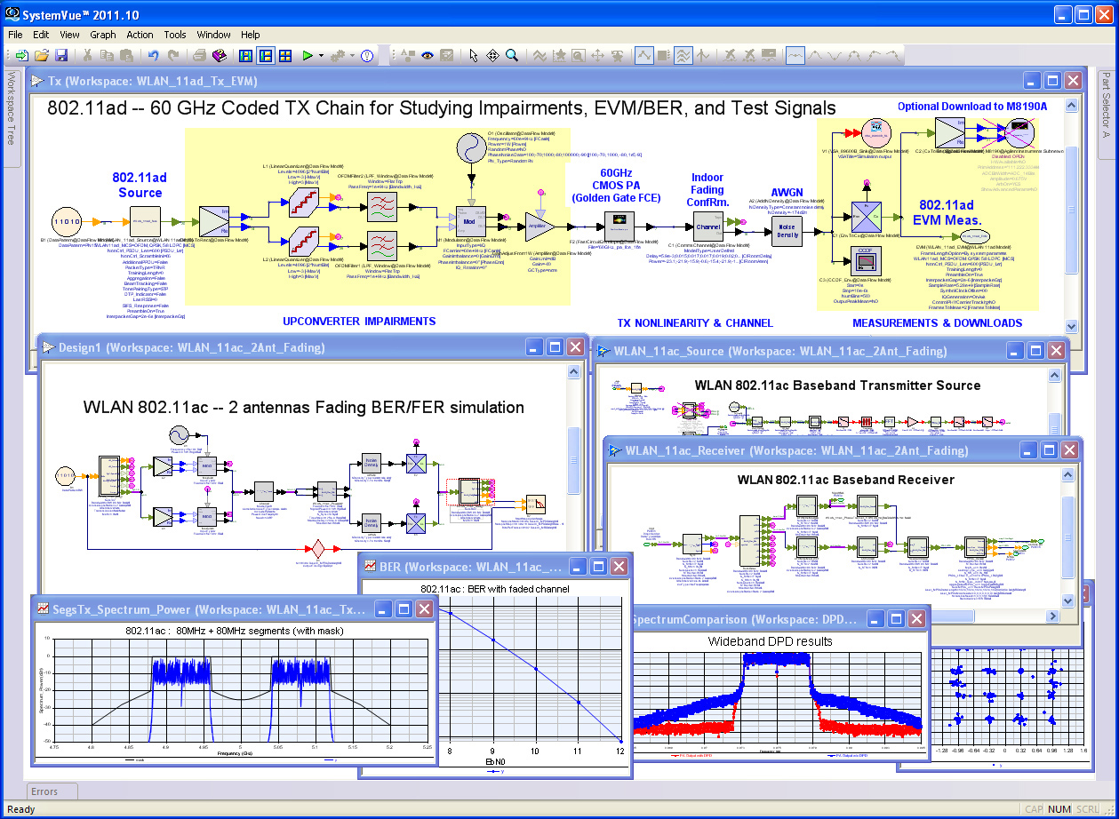 利用這個新程序庫,係統架構師現在可以查看 802.11ac 算法和模型的係統級效率,信號質量的預失真、減損、幹擾和衰落,以及比特誤碼率。
