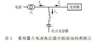 電力電容器由於諧波引起並聯諧振,則有異常電流流入電容器,其結果是導致電容器過熱,絕緣層被破壞。通常,當電源阻抗充分小(電源設備容量大)時產生的故障很少,但要考慮高次諧波對低壓電力電容的影響,因此可使用帶6豫串聯電抗器的電力電容器來減小諧波幹擾,電抗器與電力容器、變頻器連接圖如圖1所示。