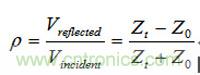 等式假設信號在特征阻抗為Z0的傳輸線上傳送遇到了不連續的阻抗Zt。注意如果Z0=Zt,反射係數為0,意味著沒有反射。Z0= Zt這種情況就稱為匹配的端接。