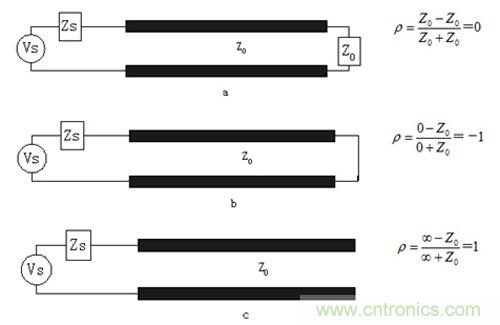 圖4.(a)端接(b)短路(c)開路 三種情況下的反射係數