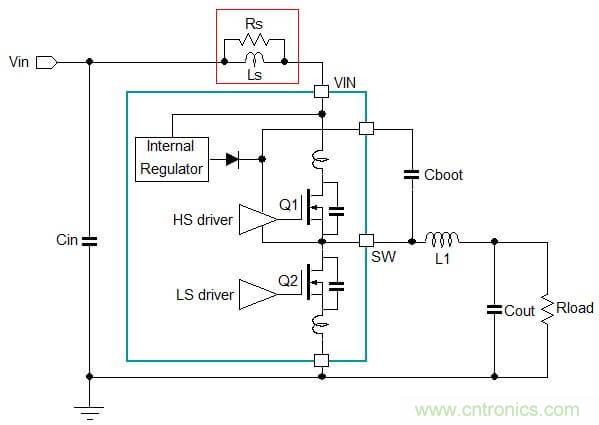 Buck架構DC/DC轉換器中存在兩個電流發生劇烈變化的主回路 :