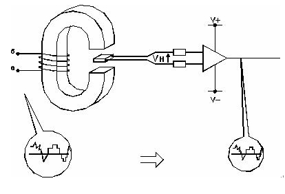 HX傳感器的核心是一個霍爾效應發生器。1879年,Edward H. Hall發現了霍爾效應,在電流流經一片薄傳導材料(霍爾發生器),並放在正交磁場中時,會發生這種效應。然後電磁洛倫茲力將感應電子,根據極性流到薄片邊緣。