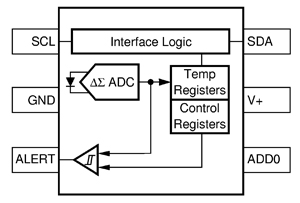 現有器件的分辨率從1℃到0.03125℃不等。National公司的LM75通常是一種9位溫度傳感器。關於前一點,LM75的全工作範圍是-55~+125℃。因此您可能希望分辨率是0.352℃。實際上,該分辨率被規定為0.5℃。TI的TMP102通常是12位器件,其分辨率為0.0625℃。即使環境溫度發生微小變化其也會提醒微控製器采取相應的措施。
