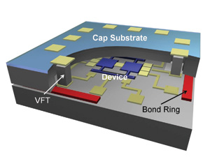 MEMS器件有時也采用晶圓級封裝,並用保護帽把MEMS密封起來,實現與外部環境的隔離或在下次封裝前對MEMS器件提供移動保護。這項技術常常用於慣性芯片的封裝,如陀螺儀和加速度計。