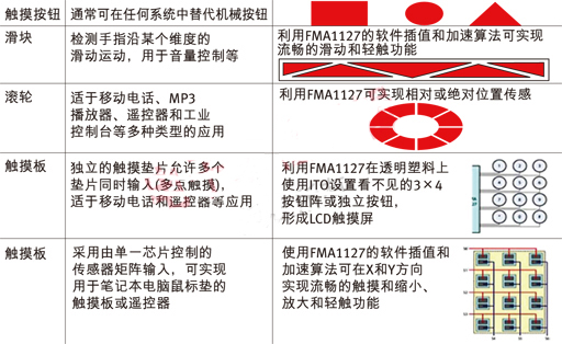 表2:各種應用的觸摸控製方案。