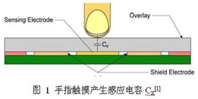 如圖1所示,對於電容式觸摸按鍵,手指的觸摸會改變感應電容Cx,當檢測電路對Cx充放電時,Cx值的變化會引起電路信號變化,通過一定的檢測電路可以測量出該變化,從而判斷手指是否存在。不過,係統整體功耗因為頻繁的掃描Cx的大小而增加。