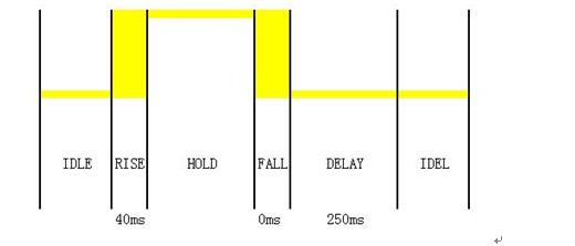 圖4是shi一yi個ge觸chu摸mo按an鍵jian應ying用yong中zhong一yi次ci典dian型xing的de按an鍵jian波bo形xing,每mei個ge按an鍵jian按an下xia後hou,係xi統tong都dou需xu輸shu出chu對dui應ying的de電dian壓ya值zhi以yi供gong其qi他ta係xi統tong檢jian測ce。該gai應ying用yong要yao求qiu響xiang應ying時shi間jian小xiao於yu等deng於yu40ms,當按鍵被長按時,需要一直輸出按鍵電壓,即使按鍵釋放後,仍需250ms時間保持原有按鍵電壓,之後停止輸出按鍵電壓,進入空閑狀態。係統共包含12個觸摸按鍵,當多個按鍵被同時按下時,係統不響應。係統低功耗設計要求為,係統待機時沒有按鍵操作的平均電流應至少小於1mA。