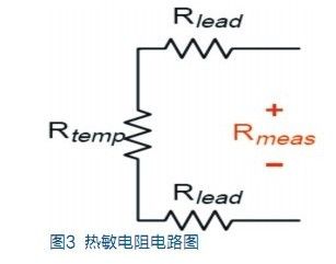 熱敏電阻在兩條線上測量的是絕對溫度, 有較好的精度,但它比熱偶貴,可測溫度範圍也小於熱偶。一種常用熱敏電阻在25℃時的阻值為5kΩ,每1℃的溫度改變造成200Ω的電阻變化。注意10Ω的引線電阻僅造成可忽略的 0.05℃誤差。它非常適合需要進行快速和靈敏溫度測量的電流控製應用。尺寸小對於有空間要求的應用是有利的,但必須注意防止自熱誤差。