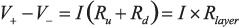 緊密捏合後,並聯電阻趨於 0,Ru + Rd提高到總電阻,因此電壓增大到: