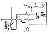 安裝好冷卻液溫度傳感器,將傳感器的連接器插好。當點火開關置於 ON 位置時,測量圖 1 中連接器“ THW ”端子 ( 豐田車 ) 或 ECU 連接器“ THW ”端子與 E2 間輸出電壓。所測得的電壓應與冷卻液溫度成反比變化。
