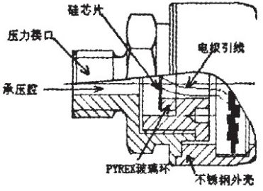 PYREX玻璃環作為矽芯片的力學固定支撐彈性敏感元件並且使矽芯片與封裝絕緣,而PYREX玻璃環的孔恰好成為了傳感器的參考壓力腔體和電極引線腔體。其結構如圖3所示。