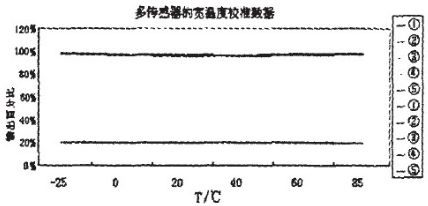 在寬溫度範圍內實測校準後的傳感器有效抑製了溫度變化對其產生的影響。如圖7所示的多隻標準信號輸出的傳感器寬溫度校準數據曲線:不難看出,在寬溫度工作環境下采用此法校準的傳感器的讀出溫度誤差約為1%一2%FS,達(da)到(dao)寬(kuan)溫(wen)度(du)的(de)高(gao)精(jing)度(du)測(ce)量(liang)要(yao)求(qiu),且(qie)通(tong)過(guo)多(duo)通(tong)道(dao)的(de)通(tong)訊(xun)接(jie)口(kou)進(jin)行(xing)校(xiao)準(zhun)的(de)方(fang)法(fa)與(yu)批(pi)量(liang)製(zhi)造(zao)技(ji)術(shu)兼(jian)容(rong),實(shi)現(xian)製(zhi)造(zao)車(che)用(yong)傳(chuan)感(gan)器(qi)的(de)高(gao)性(xing)價(jia)比(bi)的(de)要(yao)求(qiu)。