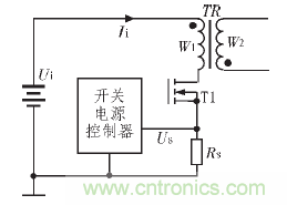 開關電源從控製方式上可分為電壓控製型和電流控製型,從隔離變壓器的驅動方式上可分為單端型和雙端型。在這些電路形式中, 許(xu)多(duo)形(xing)式(shi)的(de)開(kai)關(guan)電(dian)源(yuan)需(xu)要(yao)使(shi)用(yong)電(dian)流(liu)傳(chuan)感(gan)器(qi)檢(jian)測(ce)電(dian)流(liu),或(huo)者(zhe)用(yong)於(yu)脈(mai)衝(chong)占(zhan)空(kong)比(bi)的(de)控(kong)製(zhi),或(huo)者(zhe)用(yong)於(yu)電(dian)路(lu)的(de)保(bao)護(hu)。電(dian)流(liu)控(kong)製(zhi)型(xing)開(kai)關(guan)電(dian)源(yuan)直(zhi)接(jie)對(dui)輸(shu)入(ru)的(de)脈(mai)衝(chong)電(dian)流(liu)進(jin)行(xing)檢(jian)測(ce),能(neng)同(tong)時(shi)根(gen)據(ju)輸(shu)入(ru)電(dian)壓(ya)和(he)輸(shu)出(chu)電(dian)壓(ya)的(de)變(bian)化(hua)綜(zong)合(he)調(tiao)節(jie)脈(mai)衝(chong)占(zhan)空(kong)比(bi),具(ju)有(you)動(dong)態(tai)響(xiang)應(ying)速(su)度(du)快(kuai),輸(shu)入(ru)電(dian)壓(ya)的(de)波(bo)動(dong)對(dui)輸(shu)出(chu)電(dian)壓(ya)影(ying)響(xiang)小(xiao)等(deng)特(te)點(dian)。電(dian)流(liu)控(kong)製(zhi)型(xing)開(kai)關(guan)電(dian)源(yuan)中(zhong)需(xu)要(yao)電(dian)流(liu)傳(chuan)感(gan)器(qi)檢(jian)測(ce)輸(shu)入(ru)的(de)脈(mai)衝(chong)電(dian)流(liu), 以作為開關電源調節脈衝占空比、穩定輸出電壓的反饋信號。圖1 所示為一個電流控製型的反激式開關電源的輸入通道原理圖。圖中電阻RS在電路中的作用即是電流傳感器, 在功率開關T1導通時, 流過隔離變壓器原邊繞組W1的電流Ii將使RS上產生電壓降US,US即為向開關電源控製器反饋的輸入電流值信號。根據輸出電壓反饋信號和輸入電流值反饋信號US, 開關電源控製器將綜合調節電路的脈衝占空比,保證輸出電壓的穩定。