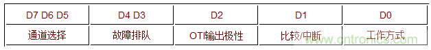D1 用於設置OTI的工作方式。0表示采用比較方式工作,即當環境溫度超過TOTI時觸發OUT輸出,其輸出電平一直保持到環境溫度降至THYST;1表示采用中斷方式工作,即當環境溫度超過TOTI的觸發OTI輸出,其輸出電平將一直保持到下一次讀操作,而在這期間,即使環境溫度降到THYST,輸出電平也不翻轉;