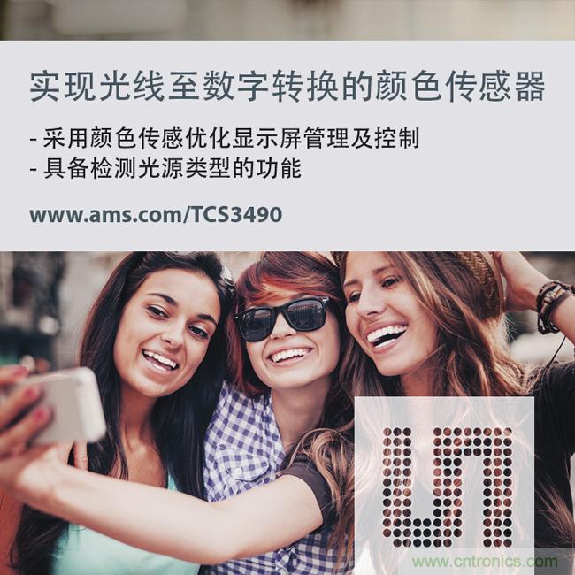 ams高級光學傳感器產品高級市場經理David Moon表示:“消費電子設備的觸摸顯示屏是一個重要的競爭點。製造商可以通過更加智能的顯示屏管理功能使自己的品牌脫穎而出。TCS3490五通道顏色傳感器不僅賦予顯示屏更生動、更具吸引力的色彩,也在室內、室外不同光照條件下使用戶的雙眼獲得更舒適的視覺體驗,因為該傳感器的CCT測量更緊密貼合人眼所能感知的色彩和亮度。”