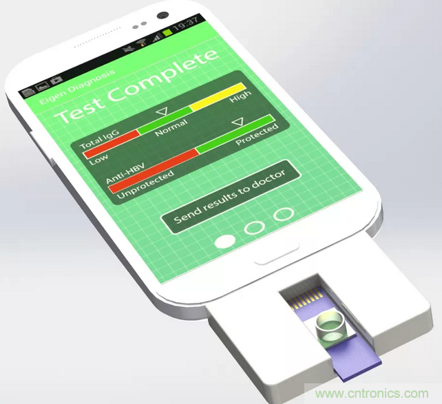 igen Lifescience團隊由斯坦福大學4名學生和2名顧問組成,利用一年時間研發出一款微型設備,在不到10分(fen)鍾(zhong)的(de)時(shi)間(jian)內(nei)就(jiu)能(neng)測(ce)試(shi)出(chu)患(huan)者(zhe)是(shi)否(fou)患(huan)有(you)乙(yi)型(xing)肝(gan)炎(yan)。該(gai)設(she)備(bei)主(zhu)要(yao)利(li)用(yong)智(zhi)能(neng)手(shou)機(ji)的(de)微(wei)處(chu)理(li)器(qi),成(cheng)本(ben)低(di)廉(lian),易(yi)於(yu)攜(xie)帶(dai)。這(zhe)款(kuan)設(she)備(bei)主(zhu)要(yao)針(zhen)對(dui)醫(yi)療(liao)資(zi)源(yuan)緊(jin)張(zhang)的(de)發(fa)展(zhan)中(zhong)國(guo)家(jia)而(er)設(she)計(ji),能(neng)夠(gou)快(kuai)速(su)確(que)定(ding)需(xu)要(yao)優(you)先(xian)治(zhi)療(liao)的(de)患(huan)者(zhe)。將(jiang)來(lai),該(gai)設(she)備(bei)的(de)檢(jian)測(ce)範(fan)圍(wei)可(ke)能(neng)得(de)到(dao)進(jin)一(yi)步(bu)拓(tuo)展(zhan),如(ru)檢(jian)測(ce)HIV或心髒病等。