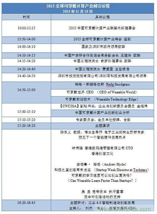 活動覆蓋麵之廣,參會嘉賓規格之高,演講話題專業務實,必將使得本次峰會在可穿