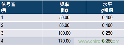 在振動測試儀上重建了一個實際場景,例如在基於振動的狀態監控中所述的場景,以便利用已知激勵信號比較器件。本例展示了一台以5100 rpm (85 Hz)運轉的汽輪機和一台未對準的3000rpm (50 Hz)同步發電機的振動水平。該場景說明的是采用隨機振動測試模式時,振動係統經編程所產生的頻率和振幅。表1列出了兩個器件在目標頻率的振幅測量結果。