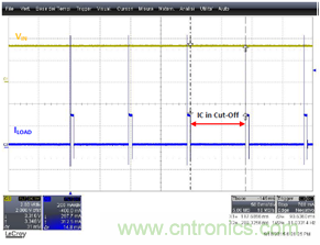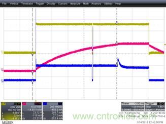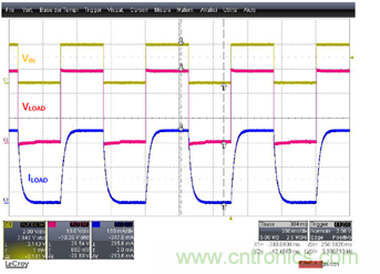 圖7所示是充電波形(綠線代表Vin;紅線代表Vload;藍線代表Iload)。