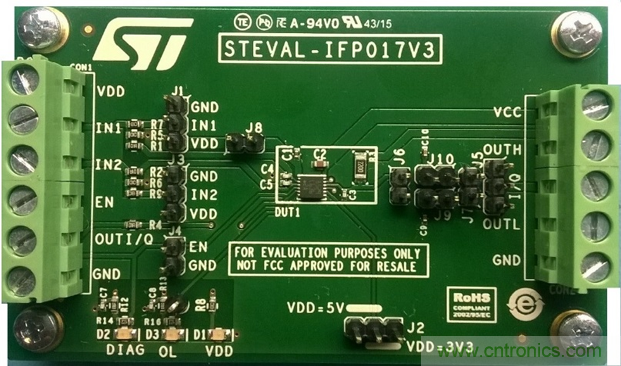 圖5:STEVAL-IFP017V3演示板,用於測試L6362A的阻容和電感負載驅動能力