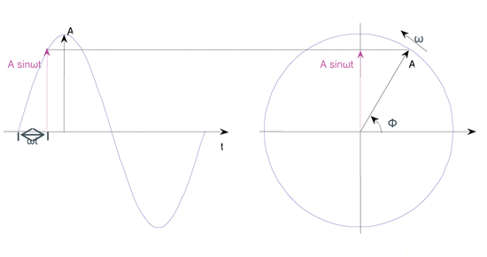圖1 時域表述的正弦波與矢量信號的對應關係