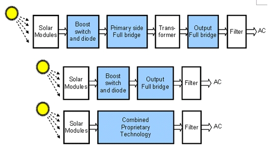 這類逆變器的首要功能是把輸入的 DC電壓轉換為一穩定的值。該功能通過升壓轉換器來實現,並需要升壓開關和升壓二極管。