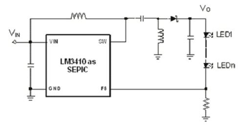 另外,Boost調節器不允許輸出電壓下降到輸入電壓以下。這個條件需要一個輸入端短電路並且使利用一個並聯FET實現調光變得不可能。。在Buck-Boost拓撲中,並聯FET調光仍然不可能或者不切實際,這是因為它需要一個輸出電容(SEPIC,Buck-Boost和flyback),或者輸出短電路(Cuk和zeta)中的未受控製得輸入電感電流。當需要真正快速PWM調光的時候,最好的解決方案是一個二級係統,它利用一個Buck調節器作為第二LED驅動級。如果空間和成本不允許的時候,下一個最好的原則就是一個串聯開關(圖4)。