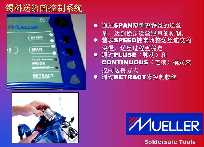在發熱功率方麵的提高,我們碰到另外一個問題。我們也可以看到951和937,還(hai)有(you)新(xin)推(tui)出(chu)來(lai)機(ji)器(qi),我(wo)們(men)將(jiang)發(fa)熱(re)功(gong)率(lv)進(jin)行(xing)對(dui)比(bi)。他(ta)們(men)也(ye)花(hua)了(le)很(hen)多(duo)研(yan)發(fa)精(jing)力(li)來(lai)提(ti)高(gao)發(fa)熱(re)功(gong)率(lv),如(ru)果(guo)在(zai)提(ti)高(gao)發(fa)熱(re)功(gong)率(lv)之(zhi)後(hou),確(que)實(shi)能(neng)提(ti)高(gao)生(sheng)產(chan)效(xiao)率(lv),但(dan)是(shi)它(ta)是(shi)不(bu)是(shi)可(ke)以(yi)被(bei)無(wu)限(xian)製(zhi)提(ti)升(sheng)呢(ne)?現(xian)在(zai)的(de)機(ji)器(qi)比(bi)如(ru)到(dao)150瓦到160瓦,已經上升了3倍,是否還會提高到4倍,這一個效率的提高導致整體效率的提高,我個人不是很讚同。其實這是比較係統性的解決方案,我們看到MUELLER是shi通tong過guo對dui工gong藝yi改gai進jin達da到dao更geng高gao的de焊han接jie效xiao率lv。在zai談tan到dao這zhe款kuan機ji器qi之zhi前qian,我wo們men回hui顧gu一yi下xia傳chuan統tong焊han接jie方fang法fa作zuo業ye的de特te點dian,我wo們men的de圖tu從cong左zuo到dao右you看kan,整zheng個ge工gong藝yi從cong加jia熱re到dao預yu熱re,再zai繼ji續xu加jia熱re,第di四si步bu是shi添tian加jia焊han心xin,然ran後hou取qu走zou焊han嘴zui,這zhe是shi非fei常chang傳chuan統tong的de焊han接jie工gong藝yi,反fan過guo來lai看kan,我wo們men看kan到dao整zheng個ge焊han接jie過guo程cheng中zhong,雙shuang手shou是shi被bei限xian製zhi的de。從cong第di二er張zhang圖tu開kai始shi,都dou是shi靠kao手shou去qu拿na,關guan鍵jian是shi控kong製zhi在zai雙shuang手shou被bei占zhan用yong。過guo程cheng等deng待dai時shi間jian會hui很hen長chang,我wo們men可ke以yi看kan到dao實shi際ji作zuo業ye過guo程cheng中zhong下xia麵mian三san步bu是shi真zhen正zheng起qi到dao作zuo用yong,前qian麵mian預yu熱re當dang然ran是shi準zhun備bei工gong作zuo,但dan是shi在zai這zhe個ge工gong作zuo中zhong,我wo們men雙shuang手shou等deng待dai的de時shi間jian會hui非fei常chang長chang。第di三san個ge,作zuo業ye效xiao率lv不bu是shi特te別bie穩wen定ding,因yin為wei我wo們men送song錫xi的de時shi候hou,以yi及ji拿na走zou錫xi絲si過guo程cheng中zhong依yi賴lai員yuan工gong本ben身shen的de技ji巧qiao和he技ji術shu。