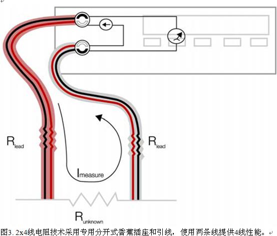 zaiceliangdianzushi,wanyongbiaohuibadianliuyuanqiehuandaocelianghuanluzhong。dianliubeiqudongtongguoweizhidianzu,wanyongbiaoceliangdedaodedianyaxiadie。ruguozhiyouliangtiaoyinxian,rutu1所suo示shi,源yuan電dian流liu流liu經jing的de路lu徑jing與yu測ce量liang電dian壓ya下xia跌die的de路lu徑jing相xiang同tong。測ce量liang引yin線xian並bing不bu是shi完wan美mei的de導dao體ti,自zi己ji有you一yi定ding的de串chuan聯lian電dian阻zu。通tong過guo驅qu動dong電dian流liu通tong過guo測ce量liang引yin線xian,您nin不bu僅jin可ke以yi看kan到dao未wei知zhi電dian阻zu中zhong的de電dian壓ya下xia跌die,還hai可ke以yi看kan到dao每mei條tiao引yin線xian的de電dian壓ya下xia跌die。因yin此ci,您nin測ce得de的de是shi正zheng引yin線xian、未知電阻和負引線的綜合電阻。