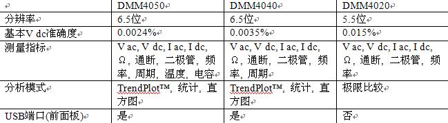 DMM係列提供了多種型號,可以滿足您的需求和預算。下列萬用表提供了2x4線電阻測量功能。