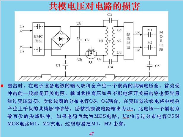 下(xia)麵(mian)講(jiang)一(yi)下(xia)共(gong)模(mo)電(dian)壓(ya)對(dui)電(dian)路(lu)的(de)損(sun)害(hai)。其(qi)實(shi)共(gong)模(mo)電(dian)壓(ya)對(dui)開(kai)關(guan)電(dian)容(rong)前(qian)麵(mian)的(de)影(ying)響(xiang)不(bu)是(shi)很(hen)大(da),最(zui)大(da)是(shi)後(hou)麵(mian)一(yi)點(dian),通(tong)過(guo)電(dian)壓(ya)器(qi)分(fen)布(bu)電(dian)路(lu),以(yi)前(qian)的(de)模(mo)式(shi)電(dian)路(lu)電(dian)壓(ya)用(yong)得(de)很(hen)低(di),都(dou)是(shi)1v-5v左zuo右you,納na米mi級ji容rong易yi擊ji穿chuan,電dian容rong也ye相xiang當dang小xiao。從cong裏li麵mian串chuan進jin去qu的de電dian壓ya經jing過guo濾lv波bo不bu斷duan的de吸xi收shou降jiang下xia來lai,一yi般ban有you上shang千qian伏fu,容rong易yi把ba後hou麵mian的de擊ji穿chuan。在zai實shi踐jian過guo程cheng中zhong為wei了le防fang雷lei,這zhe幾ji個ge位wei置zhi最zui好hao在zai上shang麵mian布bu一yi個ge雷lei點dian電dian容rong,對dui防fang雷lei電dian擊ji穿chuan很hen有you效xiao。共gong模mo電dian壓ya進jin去qu以yi後hou瞬shun間jian擊ji穿chuan,如ru果guo電dian子zi沒mei斷duan開kai,外wai麵mian的de電dian流liu會hui繼ji續xu延yan續xu下xia去qu把ba它ta燒shao掉diao,如ru果guo備bei一yi個ge電dian容rong上shang去qu,共gong模mo電dian容rong通tong過guo電dian容rong一yi下xia子zi把ba它ta吸xi收shou掉diao,讓rang幾ji個ge電dian容rong互hu相xiang通tong電dian位wei,幾ji個ge模mo組zu不bu會hui那na麼me容rong易yi擊ji穿chuan。