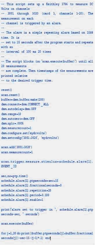 LXI的網絡連接性支持吉時利在3700係列開關/DMM產品中嵌入稱為TSB Embeded的腳本開發工具。用戶能通過儀器本身提供的Web頁麵訪問此工具,從而用Web瀏覽器開發和管理他們的腳本,無需在PC上安裝任何軟件。