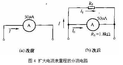 上述的分流電路計算結果表明,隻要在50uA表頭上並聯一個200Ω的電阻,即可使表頭的量程由50uA擴大到500uA。