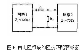 圖5所是由電阻器組成的阻抗匹配衰減器、它接在特性阻抗不同的兩個網絡中間,可以起到匹配阻抗的作用。