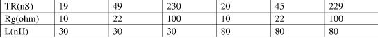 關於Rg、L對於上升時間的影響:(Cgs=1nF,VCgs=0.9*Vdrive)