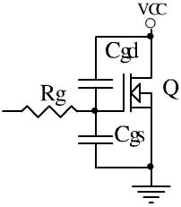 實際使用中還要考慮MOSFET柵漏極還有個電容Cgd的影響,MOSFET ON時Rg還要對Cgd充電,會改變電壓上升斜率,OFF時VCC會通過Cgd向Cgs充電,此時必須保證Cgs上的電荷快速放掉,否則會導致MOSFET的異常導通。