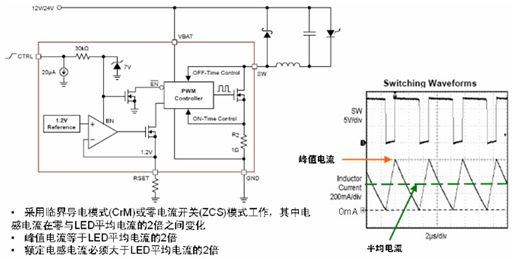在模塊化途徑下,一項設計能夠擴展用於多種光輸出等級。而且隨著LED光輸出性能增強,LED模塊要提供相同光輸出等級,所需采用的燈條就更好。而每個燈條都設有一個專用的DC-DC LED驅動器,如可以采用安森美半導體的CAT4201高能效降壓LED驅動器。CAT4201專門優化用於驅動大電流LED,采用具有專利的開關控製算法,提供高能效及精確的LED穩流(可達350 mA)。CAT4201的工作簡化框圖如圖3所示。