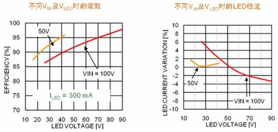 典型高壓降壓LED驅動器性能如圖5所示,從圖中可以看出當Vf/Vin大於0.8時,CAT4201可以提供93%至95%範圍的能效。