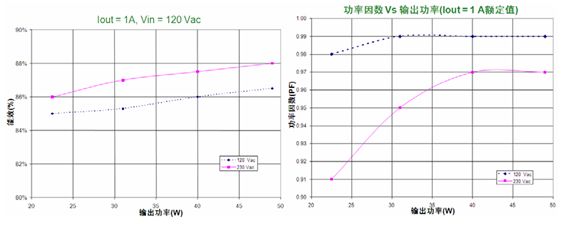 安森美半導體提供的這款基於NCL30001 LED驅動器和NCS1002控製器的90 W恒壓恒流演示板,可接受90至265 Vac的擴展通用輸入電壓(更換元件條件下可支持305 Vac),提供0.7 A至1.5 A的恒定電流輸出範圍及30 V至55 V的恒定輸出電壓範圍(可通過電阻分壓器來選擇),最大輸出功率90 W,支持50至1,000 Hz調光控製,並包含可連接至可選調光卡的6引腳接口,用於模擬電流調節/雙亮度等級數字調光等智能調光應用。此外,這款演示板還提供短路保護、開路保護、過溫保護、過流保護及過壓保護等豐富保護特性。測試結果表明,如表1所示,這演示板在50 W輸出功率、1,000 mA輸出電壓/48 V正向壓降條件的能效高於87%,在50%至100%負載條件下功率因數高於0.9,同時符合IEC61000-3-2 C類設備諧波含量標準。