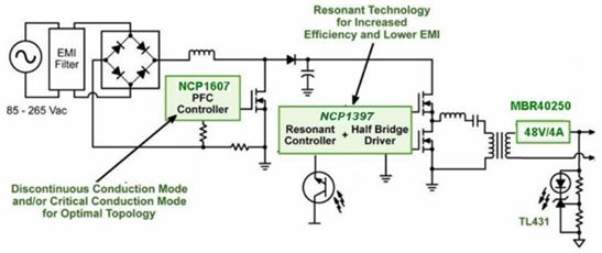圖7 基於NCP1607和NCP1397的街道照明高能效LED電源方案