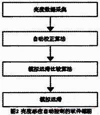 亮度感應自動控製的軟件架構主要包含亮度數據采集、實時監測技術、自動校正算法和模擬遲滯比較算法。亮度數據采集是通過光感應器感應周圍環境的亮度,將亮度信號轉換為模擬電信號,再由ADC轉變為數字信號,此數字信號再送到液晶電視的CPU進行處理。通過亮度數據采集到的數字信號,送到CPU進行自動校正算法處理;然後再進行模擬遲滯比較算法得到穩定的PWM信號;由控製背光亮度模塊控製液晶麵板的背光。如圖2所示。