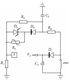 在眾多設計中,必須保護適配器免受熱失控(如適配器殼體內溫度超過特定值)影響。我們可以通過跟齊納二極管(D10)串聯一個負溫度係數(NTC)電阻(R14)來應用簡單的 OTP(如圖 3 所示)。當溫度升高時,NTC電阻開始下降,並升高引腳 3 的電壓。當引腳 3 的電壓電平達到 3 V 時,器件就簡單地閂鎖,並要求複位,然後重啟。