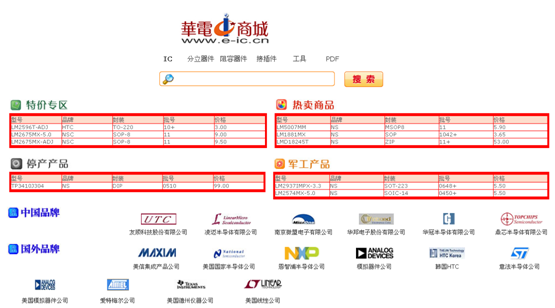 華明科技(國際)有限公司是一家從事現貨庫存的IC分銷商。近日,在本屆中國(深圳)電子展上,華明科技全麵推出全新打造的電子元器件網購平台——華電商城(http://www.e-ic.cn)。通過華電商城的線上交易,不設最低采購量,價格透明,華明科技的IC分銷有了很好的補充。