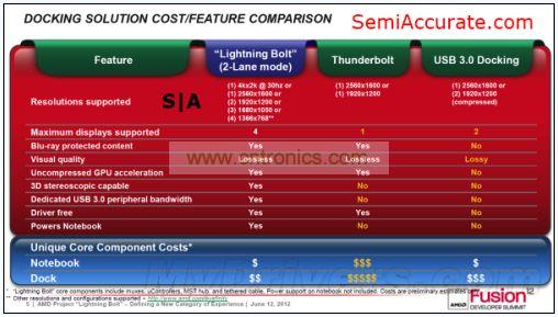 AMD的Lightning Bolt技術與Intel雷電接口比的不是更高的帶寬,而是針對後者在多設備連接及充電上的不足上有備而來。
