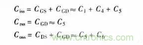 (3)C2+C4代表從柵極到源極P區間的電容。C2是電介質電容,共值是固定的。而C4是由源極到漏極的耗盡區的大小決定,並隨柵極電壓的大小而改變。當柵極電壓從0升到開啟電壓UGS(th)時,C4使整個柵源電容增加10%~15%。
