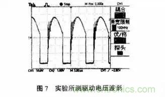 根據如前所述,驅動電壓、電流的理想波形不應該是一條直線,而應該是如圖6所示的波形。實驗波形見圖7。