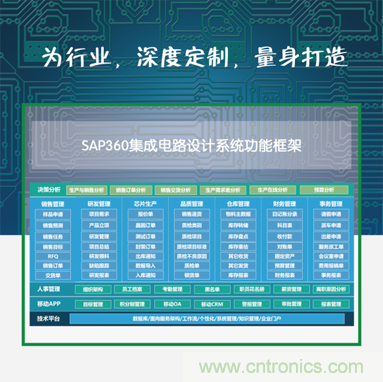 為此,深圳市思普達軟件係統股份有限公司(以下簡稱“思普達”)針對集成電路設計企業帶來全球首創的係統管理軟件。這是一款從電腦到手機皆互聯互通的全方位管理係統(SAP360),基於世界一流的SAP係統,具有先進的管理理念和一流的信息技術支撐。本套軟件已為上海、深圳、蘇州等地的多家知名IC設計企業帶來顯著的管理提升和市場競爭優勢的確立。