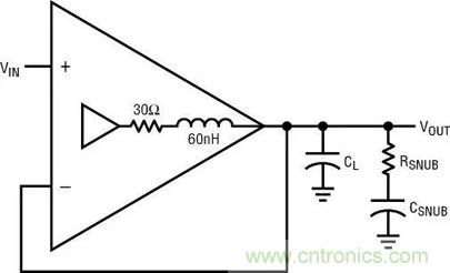 防止負載電容引起振蕩的最常見方式是,在反饋連接之後,簡單地給電容串聯一個小阻值的電阻器。10Ω 至 50Ω 的阻值將限製容性負載可能引起的相位滯後,並在速度非常高的時候,隔離放大器和低容性阻抗。缺點包括隨負載電阻特性而變化的 DC 和低頻誤差、容性負載頻率響應受到限製、以及如果負載電容在電壓變化時不恒定所導致的信號失真。