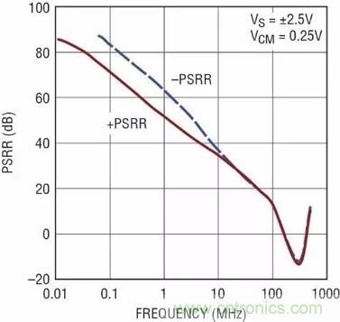 圖11:LTC6268隨頻率變化的電源抑製