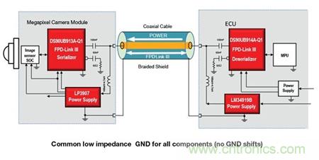 高速串行數字鏈路連接視頻組件,可在攝像頭的數字成像器與數字 LCD 顯示屏之間實現無縫連接。汽車視頻鏈路中部署的最常用及最可靠高速數字接口技術基於 ANSI/TIA/EIA-644-A 低電壓差分信號 (LVDS) 標準。LVDS 可提供一個穩健的數據傳輸標準,支持遠距離、低功耗、高噪聲抑製性以及低 EMI。LVDS 采用差分方式(而非接地所參考的單端信號)實現所需的鏈路屬性。
